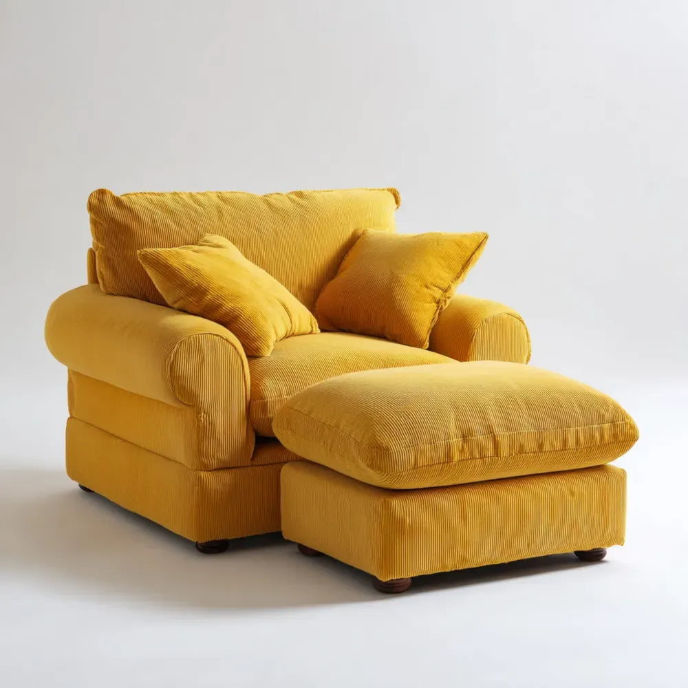 ラウンジチェア コーデュロイ 張り地 150x90x60 cm – マスタードイエロー – コンテンポラリーデザイン