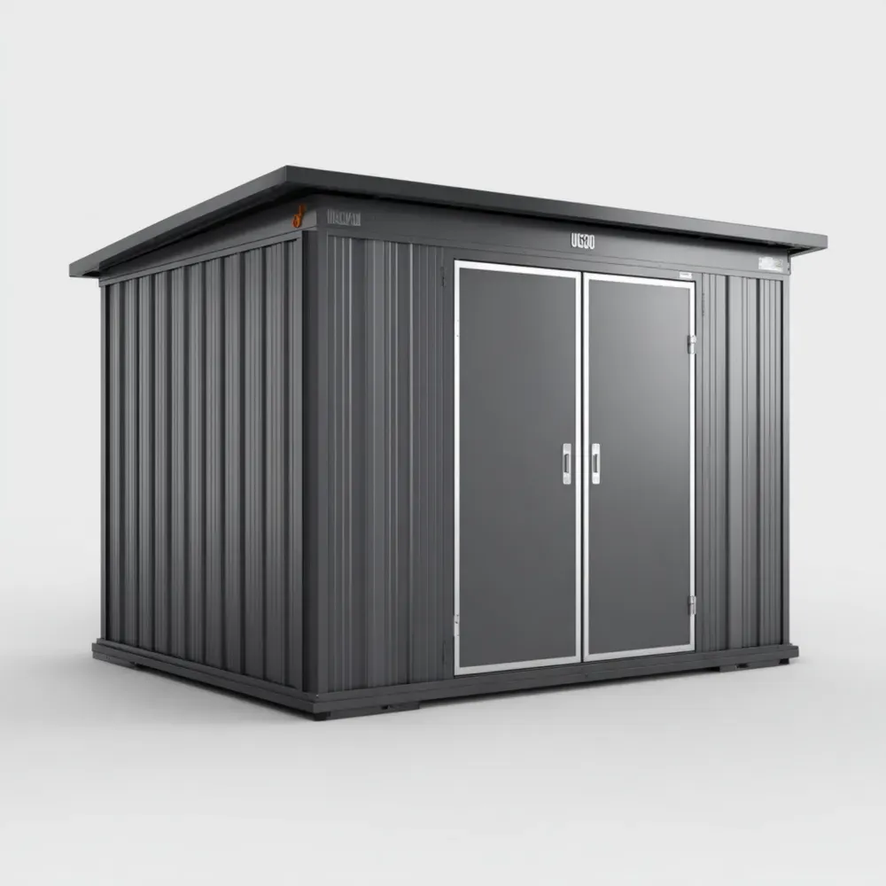 この物置はスチール製で、ダークグレーで塗装されています。腐食を防ぐ特別なコーティングが施されています。